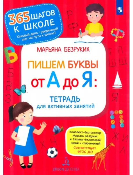 Но заниматься по «Азбуке» эффективнее всего комплексно. Одинаковая последовательность и свои задания для каждой из букв в Азбуке и 4-х тетрадей упрощают подготовку ребёнка к школе. Малыш легче выучит буквы, научится их читать, писать и находить в словах, а также подготовит руку к письму. Например, вы вместе изучаете букву А, затем открываете «Тетрадь для активных занятий», потом выполняете задания в «Азбуке-раскраске» и разрабатываете руку к письму вместе с тетрадью «Пишем буквы от А до Я». А тетрадь «Учимся писать цифры и считать» поможет ребёнку весело усвоить цифры и счёт.