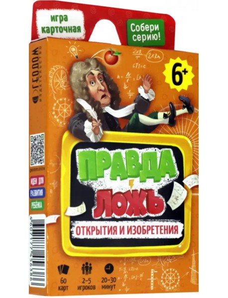 Эта карточная игра – находка для любознательных детей и их родителей! На карточках – 50 интересных фактов об открытиях, изобретениях и замечательные смешные иллюстрации. Сможете ли вы разобраться, где правда, а где ложь? Играйте – будет интересно!