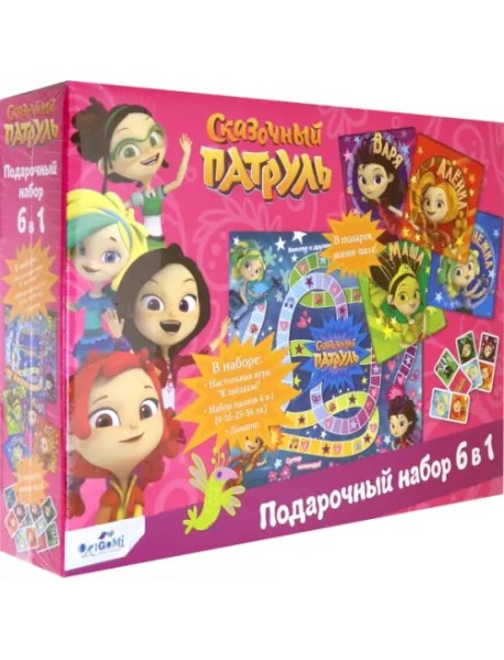 В комплект входит коллекция развивающих пазлов от 9 до 36 элементов с изображением юных волшебниц - Вари, Маши, Снежки и Аленки. Также Вы найдете весёлую настольную игру "К звёздам!", игру "Домино" и мини-пазл.