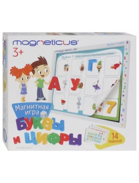 Детские психологи говорят, что лучшая учёба - это игра. И мы решили сделать обучение интересным! Магнитная игра "Буквы и цифры" состоит из красочных листовок с увлекательными тематическими заданиями, а также магнитных элементов, необходимых для их выполнения. Задания можно выполнять не только на игровом поле MAGNETICUS, которое входит в состав набора, но и на любой металлической поверхности. В набор входят задания разной степени сложности, но все они рассчитаны на самых маленьких учеников. Обучающая магнитная игра "Буквы и цифры" поможет вашему ребёнку в игровой форме узнать много нового и интересного и научиться самостоятельно познавать мир!