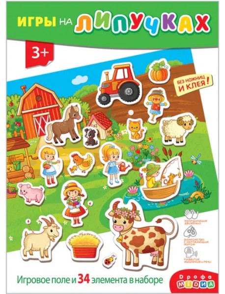 Игра знакомит с домашними животными и их детёнышами, растениями, которые можно вырастить на огороде, деятельностью человека на ферме. Учит придумывать истории, пользоваться липучками, развивает речь, мышление, мелкую моторику.