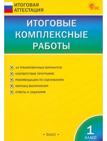 В издании представлены задания для проведения итогового контроля знаний учащихся 1 класса. Сборник содержит 14 вариантов работ, в каждой из которых 10 заданий. Составлен в соответствии с программой для начальной школы и требованиями ФГОС НОО. Задания помогают выявить уровень сформированности универсальных учебных действий и оценить успешность усвоения основополагающих предметных компетенций по русскому языку, литературному чтению, математике и окружающему миру. Приведён образец выполнения комплексной работы. В конце издания даны ответы к заданиям.