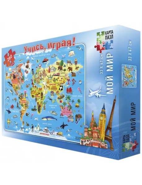 Пазл "Мой мир" поможет весело и познавательно изучить с ребенком окружающий мир. Собирая яркие и красочные детали головоломки, ребёнок сможет запомнить как выглядят континенты и узнать какие интересные особенности и достопримечательности на них находятся. Пазл помогает развить мелкую моторику рук, воображение и кругозор.