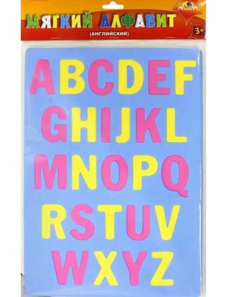 Набор для детского творчества "Мягкий алфавит, английский" изготовлен из мягкого пластика EVA толщиной 8 мм, представляет собой прямоугольник размером 25,5х35 см, в котором сделана высечка и вставлены буквы английского алфавита . Высота букв 4,5 см, они лего достаются и вставляются обратно.