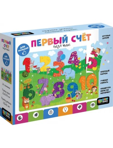 Пазл 24 элемента - это отличный подарок для любого ребенка! Сборка пазла поможет развить внимательность и мелкую моторику, а также легко и просто научиться считать до десяти! Крупные детали из толстого картона удобно ложатся в маленькие ручки. Учитесь считать вместе с Baby Games.
