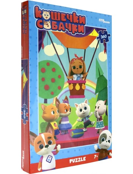Этот пазл состоит из 360 элементов. На картинке мы видим одну из сцен мультфильма "Кошечки и собачки": на этот раз наши друзья отправились в путешествие на воздушном шаре.