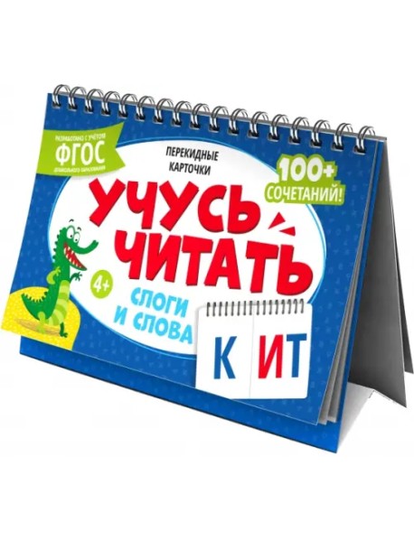 Карточки перекидные обучающие, сброшюрованные, 210х150 мм, полноцветная печать, обл - мелованная бумага 250 г/м?, глянцевая ламинация, гребень, Внутренний блок разделен на две части, что позволяет собирать различные сочетания слогов и слов.