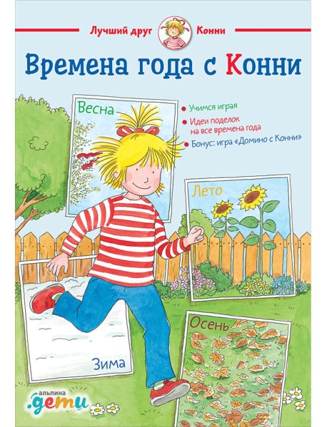 Давайте потренируемся различать времена года! Вместе с Конни малыш узнает, кто впадает в спячку, а кто улетает в тёплые края; вспомнит, какие праздники мы отмечаем зимой, а какие весной, и придумает себе интересные занятия для летних каникул. Бонус — игра «домино», которую ребенок сможет самостоятельно раскрасить, вырезать и играть с друзьями.